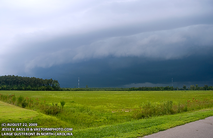 On the way home from the Outer Banks, a large shelf cloud makes it way eastward in North Carolina.