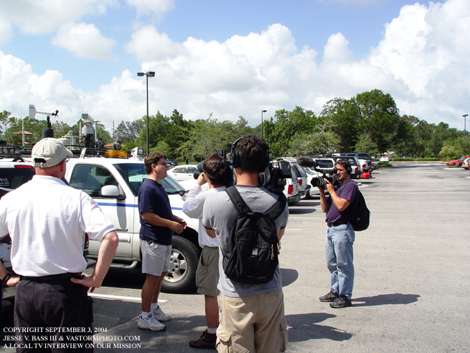 DAYTONA BEACH TO FORT PIERCE, FLA. SEPTEMBER 2-6, 2004 Just a few days after Tropical Storm Gaston came ashore in South Carolina, we had to quickly get ready to leave for Florida to intercept Hurricane Frances. This time we would have a documentary crew with us for the first mission of the HLP (Hurricane Landfall Project) vehicle. I would arrive in Wilmington, NC. late in the evening of September 1. Of course Mark and I were up late looking at new model runs, satellite images and getting the latest data from the NHC as Frances was blasting her way into the Bahamas with winds of 140mph sustained. It was starting to look bad for southeast Florida as the second major hurricane to threaten the state was bearing down. On the morning of the second, we were preparing to leave for Florida and meet team member John Van Pelt along the way as the documentary crew came to Mark's to begin the filming. Jeff Flock a popular hurricane reporter with hurricane buffs who was with CNN for 20 years until last year, headed up the documentary crew from Towers Productions. They started filming us loading the vehicles with the rest of the gear, hooking up the HLP vehicle to the Tahoe and our plans for the vehicle as Frances moved inland. We hit the road in the late morning hours headed south for the Sunshine State. By 2pm a hurricane warning had been issued for portions of Florida's east coast from Florida City to Flagler Beach. We made Jacksonville by 6pm and the north bound side of I-95 was slammed with folks evacuating the east coast from West Palm Beach to Daytona Beach. We met John at a rest stop along I-95 south and stopped to shoot video and photos of the evacuations underway. After doing so, we quickly got back underway to our hotel in Daytona. The hotel was about 1/2 mile east of the Daytona International Raceway. By 8pm on September 2, Frances' winds were still 140mph but her forward speed was decreasing from 14mph to 9mph and the NHC was saying that Frances would continue to slow down. After getting up and checking the latest stats on Frances, we went outside in front of the hotel where they had started boarding up to shoot a video update for Hurricanetrack.com. From there we headed north to Ormond Beach to a Lowe's store to pick up a few last minute items and to meet the store manager. By 11am on September 3, Frances had weakened some with winds now near 115mph and the forward speed remained at 9mph. While we were there a news crew that had stopped to shoot video of folks buying their hurricane supplies saw us roll in and wanted an interview with Mark. While this was going on, I started shooting video and photos inside and out of people picking up their supplies. There were plenty of people buying plywood to board up their homes and businesses. Once we were finished at the store, we went to Daytona Beach to check out the conditions. The sun was shinning brightly and the beach was vacant. Most of the local stores and hotels were closed and the beach road looked like a ghost town. We found a beach access and pulled over where there were maybe twenty-thirty people standing around looking at the Atlantic Ocean grow more angry by the minute. John and I went down onto the beach where we could shoot the beach and how vacant it was for a Labor Day holiday weekend. The documentary crew followed and shot the beach as well. John and I met a mother and daughter who are locals to Daytona and spend part of their time there and part of the time in California. We asked to shoot them as they watched the ocean waves and the beautiful cumulus clouds roll in from the ocean. They were the only people on the beach besides us. After we left the beach we stopped by an gas station that was open to top off fuel and went to the Red Lobster across the street from our hotel to get one last hot meal. Afterwards we had a bit of work to do to the HLP vehicle to get it ready for the landfall of Hurricane Frances. By morning, Frances had weakened to 105mph and was moving slowly, near 4-6mph towards the Florida east coast. Heavy rainbands a squally weather had already come ashore south of Daytona near Hutchinson Island and Fort Pierce and points south. There were reports of damage coming in of trees down along with power lines and some minimal roof damage. We loaded up the vehicles and headed south to Hutchinson Island where we would leave the Rodeo (HLP vehicle) to gather data for the duration of the hurricane. Frances' eye had widened to 70 miles in diameter. Here is a sentence from the 11am discussion on Frances, "FRANCES HAS A LARGE EYE AND IS MOVING SLOWLY. THEREFORE...THOSE IN THE PATH OF THE CENTER WILL EXPERIENCE THE CALM OF THE EYE FOR A LONG PERIOD OF TIME." That calm period was about 7 hours if you went right through the direct center of the hurricane. Once we found an area to leave the HLP, John and I headed back to Fort Pierce where Mark had called the EOC office there and lined up a place for us to stay. With possibly 18 hours of hurricane conditions and the threat of 20 inches of rain possible due to Frances' slow forward speed, we need a place to go. Mark and the documentary crew stayed behind to make sure everything was running and that the data was being sent back to the website when a gentleman who told us we were welcome to use his condo in Hutchinson Island contacted Mark and told him they were right down the street from it by watching the webcam. They went to the condo and stayed the night there while John and I were back at the EOC seeing how things were handled there and working with some local media. By morning Frances was moving inland slowly and we were in contact with Mark as they were making their way up I-95. John and I met them at a rest stop just outside Fort Pierce. As they pulled into the parking lot, in comes my friend from West Virginia Dan Robinson who drove down by himself to intercept Frances. We talked about the storm for a few minutes and Mark and John finally got to meet him. We said our goodb