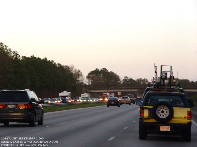 With the Rodeo in tow, we were just reaching Jacksonville where we could see the line of traffic headed north as evacuees were getting out of the way of Hurricane Frances. Some two million people were asked to leave their homes.